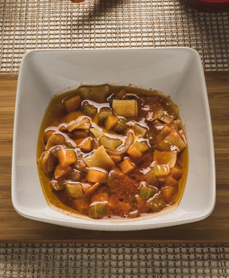 - Tagliare in piccoli quadrati.