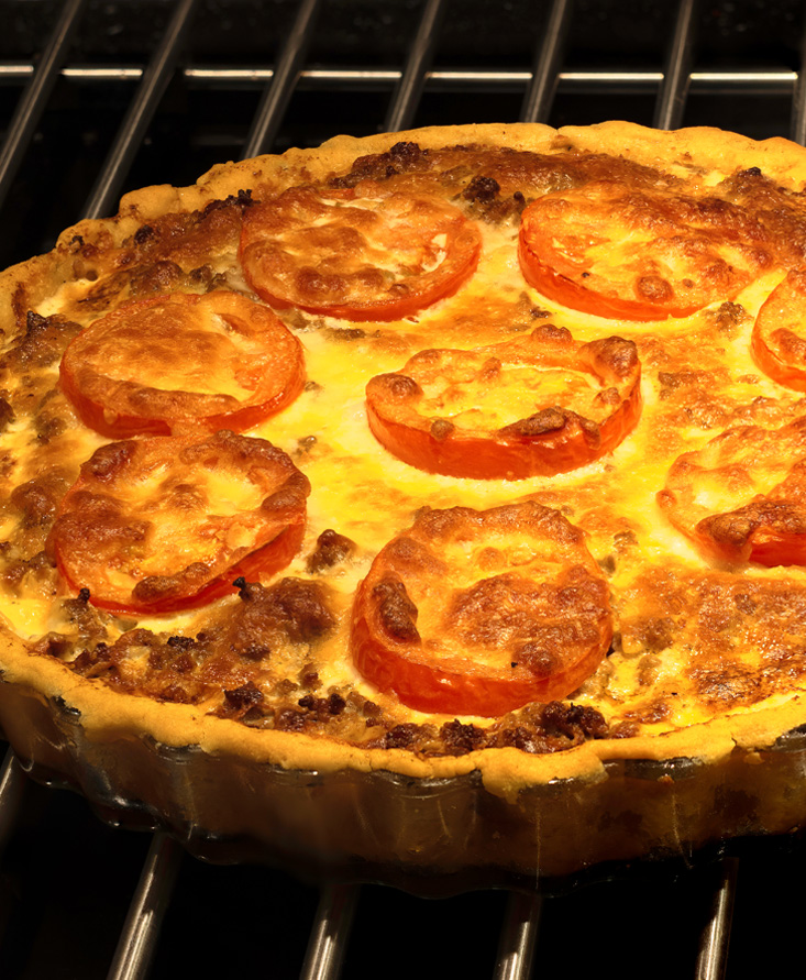 التحضيربالقليل من الزيت نضع البصل والثوم ثم نضع اللحم المفروم نقلب الى أن يبدأ بالاستواء نضيف الطماطم المقطعة من بومي مع البهارات المذكورة ندعها حتى الاستواء بالكامل ندهن قالب التشيز كيك بالقليل من الزيت نرتب خبز التورتيا بداخله حتى نسكر جميع الفراغات نضع القليل من الجبن ثم نضع خلطة اللحم وبعدها الفلفل البارد المقطع من ثم نزيد طبقة من الجبن ندخلها الفرن بحرارة 90 درجة لمدة 20 دقيقة ثم نشغل النار من الاعلى مع مراعاة تغطية اطراف الخبز بورق الألمينيوم حتى لا تحترق يمكن تقديمها مع الكريمة الحامضة او الجواكامولي | For this recipe we used:صلصلة طماطم بومي بالأعشاب q.b. |