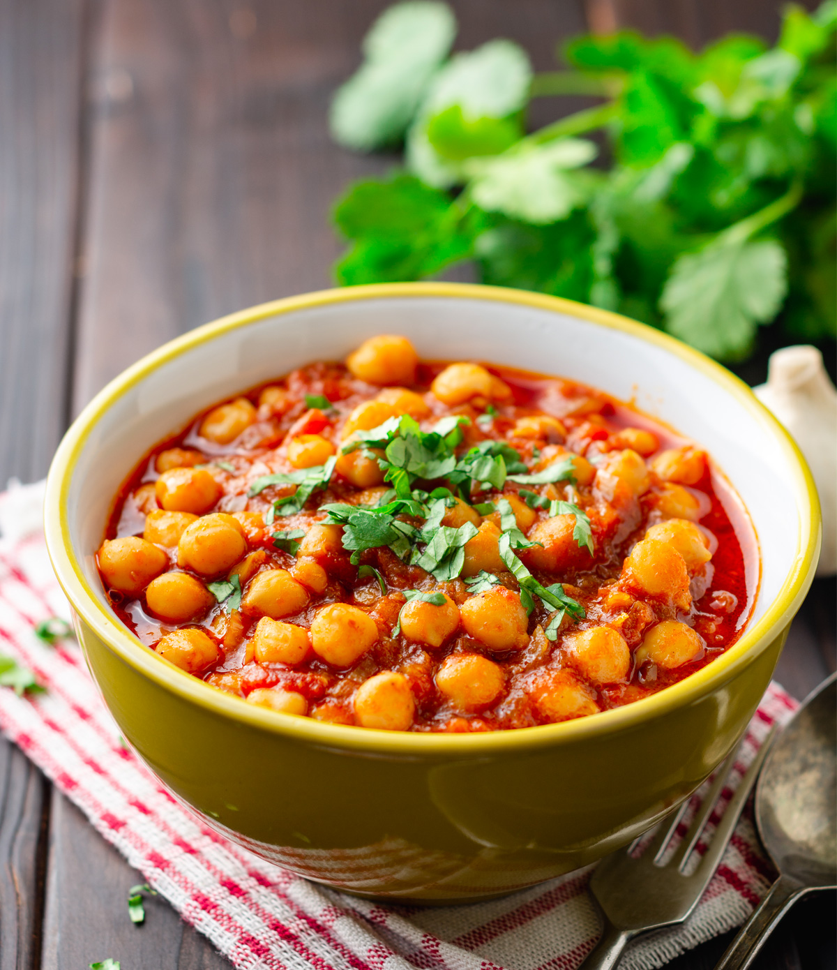 - يسكب الحمص بمائه المنقوع على الخليط. ويترك على النار لمدة 10 دقائق. ثم تضاف التوابل وعصير الليمون ورشة ماء صغيرة إذا كنت تحبه بنكهة الكاري الخفيفة. يقدم مع أوراق الكزبرة الطازجة.