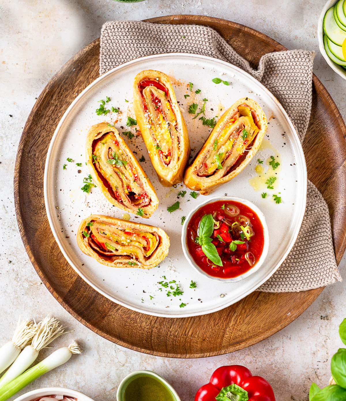 - Cortar el strudel de pizza varias veces con un cuchillo afilado.
