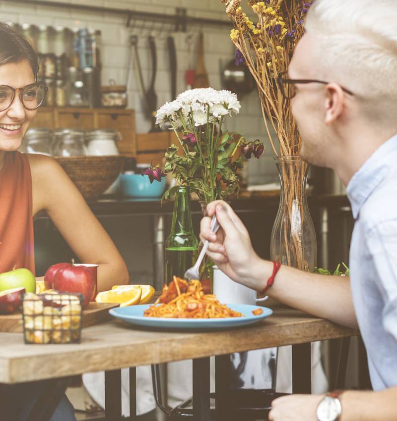 Memorable and romantic was the candlelit dinner with spaghetti and meat sauce in "Lady and the Tramp" by Walt Disney.