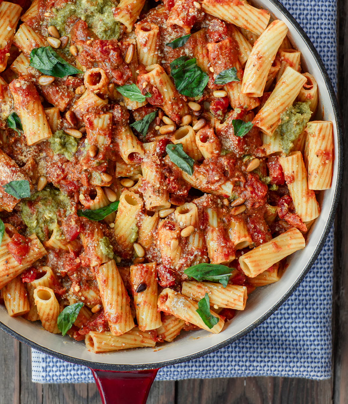 הֲכָנָה מנה קלה ומהירה להכנה - פסטה "ריגאטוני" עם רוטב עגבניות ופסטו. מצוינת כמות שהיא, או שאפשר להוסיף עוף בגריל מלמעלה. - בסיר גדול, עמוק, עם מכסה, מערבבים על אש בינונית Pomì chopped tomatoes, Pomì tomato sauce, מים ופסטו מריחן. מתבלים במלח ופלפל. מבשלים על אש קטנה ובוחשים מדי פעם עד שהרוטב מתעבה. בערך 15 דקות.