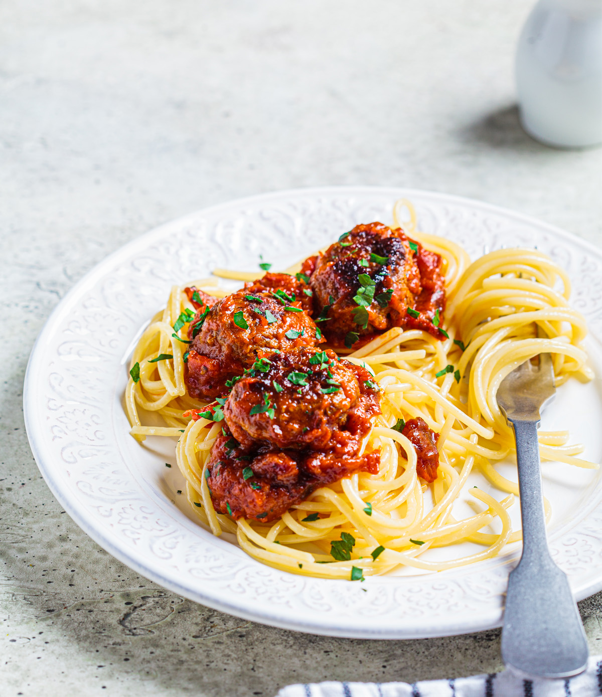 - מכינים את הספגטי המועדף ומסננים את כל המים. בכלי הגשה גדול שמים את הספגטי תחילה, מזלפים מעט שמן זית, מוסיפים את כדורי הבשר וחלק מהרוטב. את שארית הרוטב מגישים בכלי לרוטב