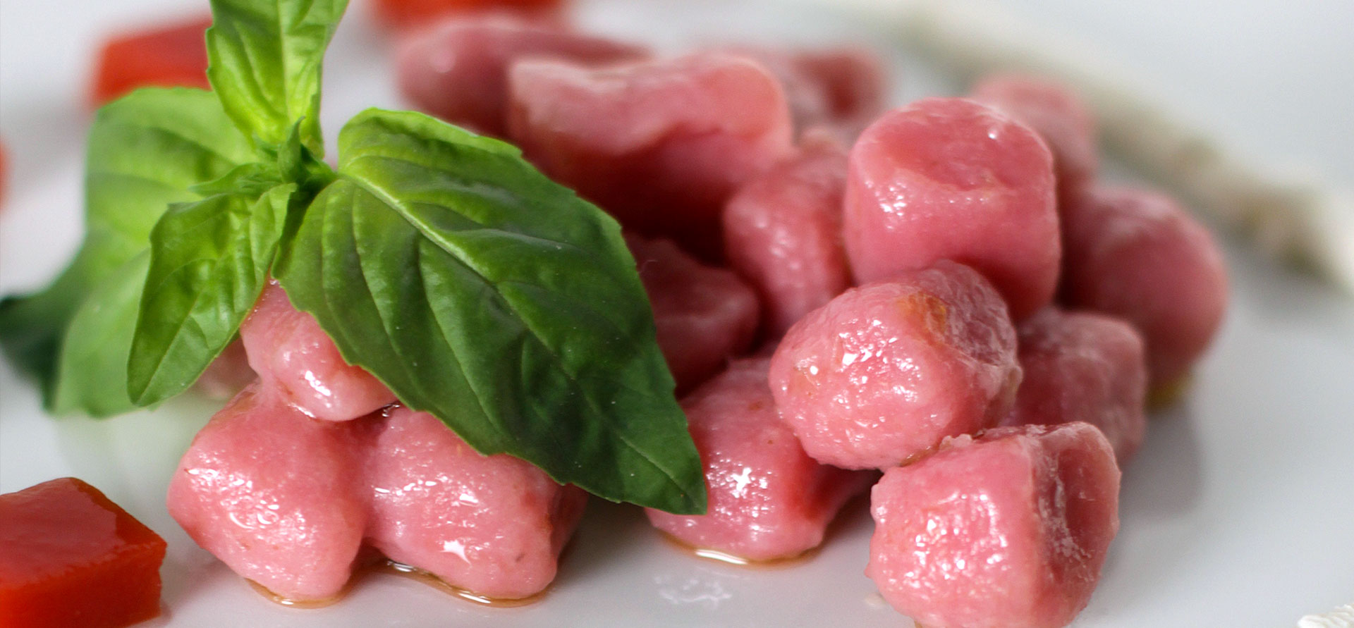 שפכו לסיר פומי עגבניות מרוסקות והביאו לרתיחה. תבלו במלח, פלפל, ורוטב טבסקו. הוסיפו אגר אגר (לאחר המסה במעט מים), העבירו לאחר מכן את התערובת למגש רדוד ביותר (1 ס"מ) והכניסו למקרר למנוחה. כשהתערובת תהיה מוכנה, חיתכו לקוביות קטנות (מחצית מגודל הניוקי).