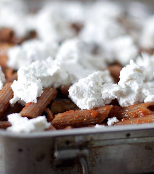 Per una fantastica cena estiva, perché non preparare delle gustose Pennette nere gratinate alla siciliana con ricotta di capra?