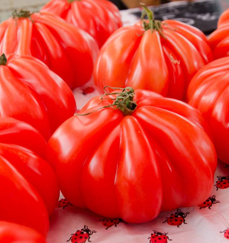 Il Pomodoro Cuore di Bue è una varietà di pomodoro particolarmente aromatica, dalla polpa ricca e farinosa, quasi priva di semi, che ne fanno un ortaggio ideale per piatti freddi e insalate, generoso anche per le pezzature importanti che raggiunge, dai 250 grammi fino a 1 chilo.