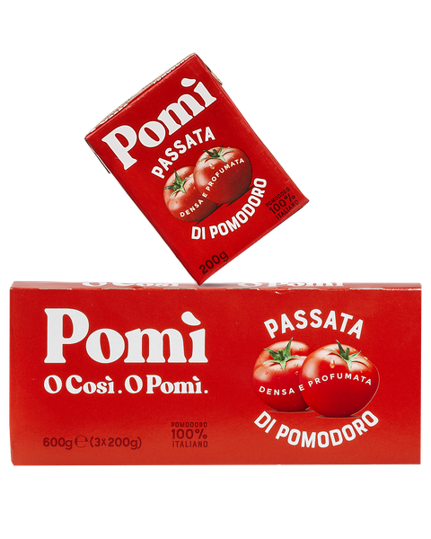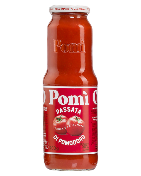La passata di pomodoro è uno degli ingredienti più utilizzati in cucina. Comoda e veloce, la passata Pomì è ideale per preparare ricette gustose con pasta, verdure, cereali, uova e piatti di carne. Il gusto e il profumo inconfondibile rendono la nostra passata l'autentica protagonista della cucina mediterranea. La passata di pomodoro Pomì è composta esclusivamente da pomodori 100% italiani, garantiti lungo tutta la filiera.