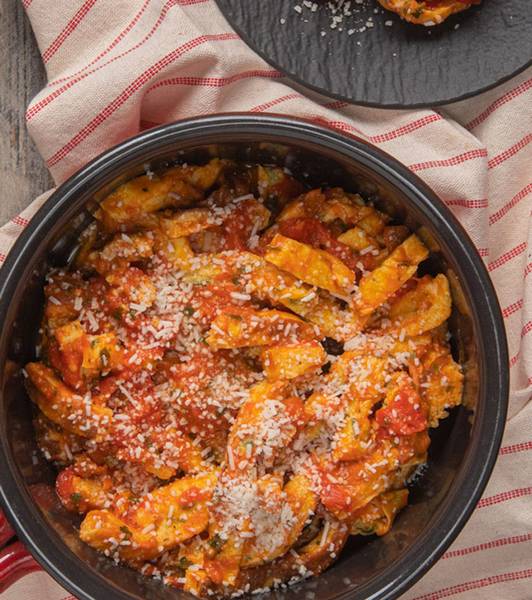Dopo le prime fasi di cernita e lavaggio, i pomodori vengono scottati e pelati, poi nuovamente cerniti a mano, e cubettati. A questo punto della lavorazione si aggiunge del succo leggermente concentrato. Il prodotto, infine, viene pastorizzato termicamente e confezionato in modo asettico, a temperatura ambiente - o riempito a caldo - per garantire sicurezza e stabilità microbiologica. Fresco, unico e denso: lasciati ispirare da un gusto capace di raccontare la qualità di una saporita materia prima italiana per ricette subito pronte.