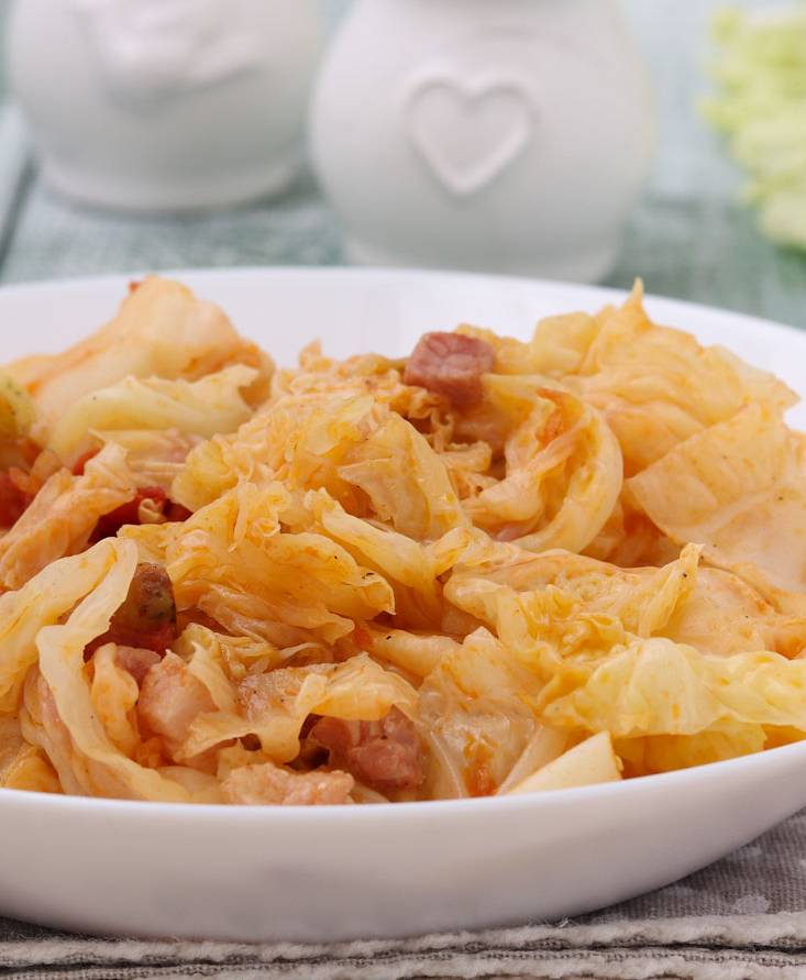 A cottura ultimata, unite la pancetta abbrustolita, il parmigiano grattugiato ed il pepe nero. La verza stufata in padella è pronta da servire, è davvero gustosissima!
