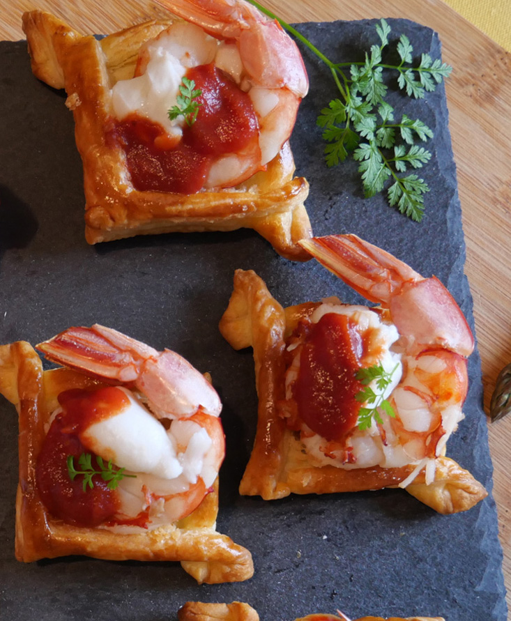エビとモッツァレラチーズのサクサクトマトソースパイ