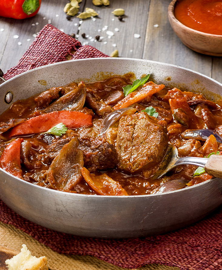 材料をすべてキャセロールに入れ、塩、カルダモン、カレー、