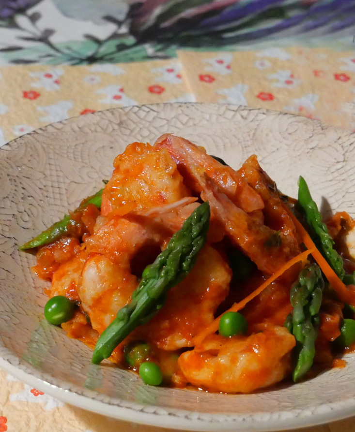 海老とアスパラガスのトマトチリソース 準備時間: 30 min