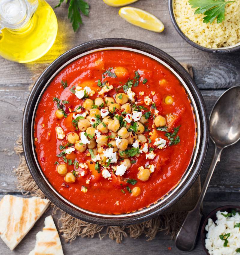 - حساء بومارولا بالحمص: يشكل الحمص والأعشاب العطرية وصلصة الطماطم طبقًا مريحًا وغنيًا بالألياف.