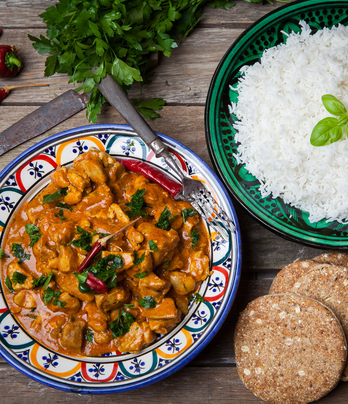 - يُتبل ويُقدم مع أوراق الكزبرة الطازجة وأرز بسمتي وخبز النان.