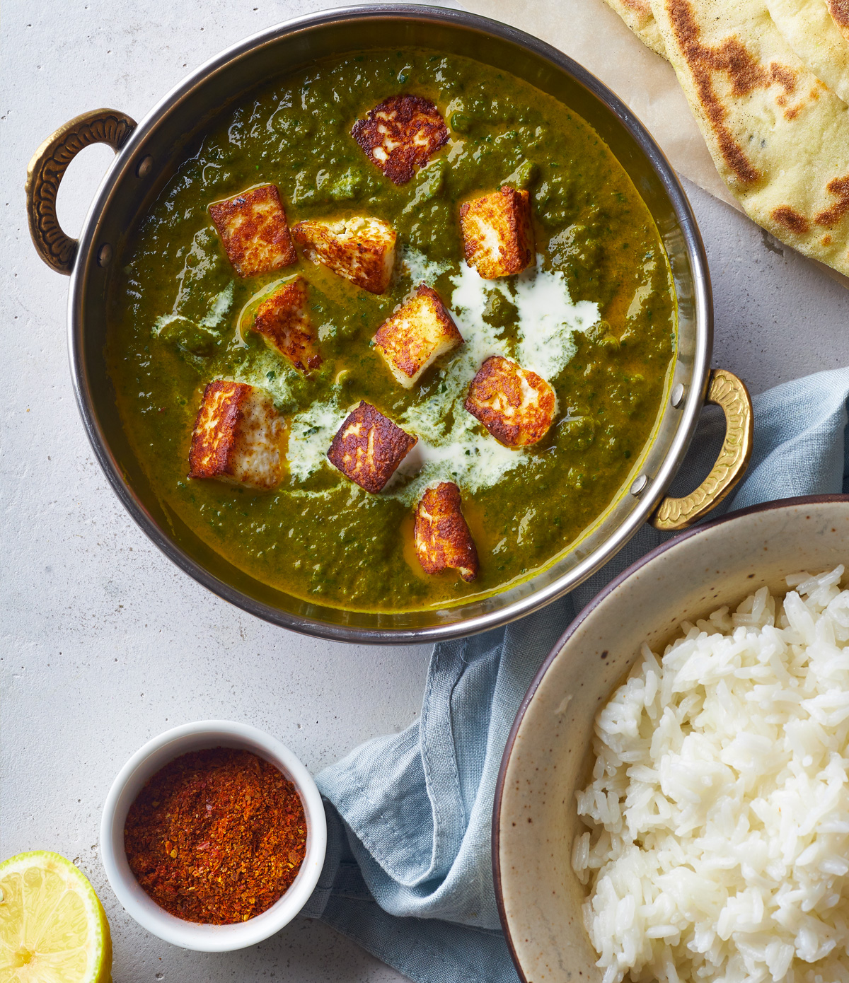 - اترك المكونات في وعاء مغطى على النار لمدة 6-8 دقائق حتى يكتمل طهي السبانخ وتمتزج جيدًا بالتوابل. أضف قطع البانير إلى الخليط.