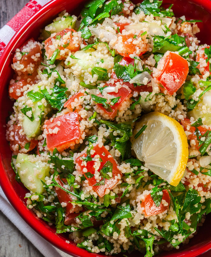 التحضيريُطهى البرغل في وعاء مغطى حتى يستوي جيدًا، مع الحرص على عدم التصاقه بقاعدة الوعاء، ثم يُنقل إلى وعاء، ويُضاف إليه المكونات الأخرى كالخيار المقطع والكراث المفروم والبقدونس والنعناع وصلصة طماطم بومي والفلفل الأسود وزيت الزيتون وعصير الليمون. | For this recipe we used:سترينيد توميتوز 100 مل م |