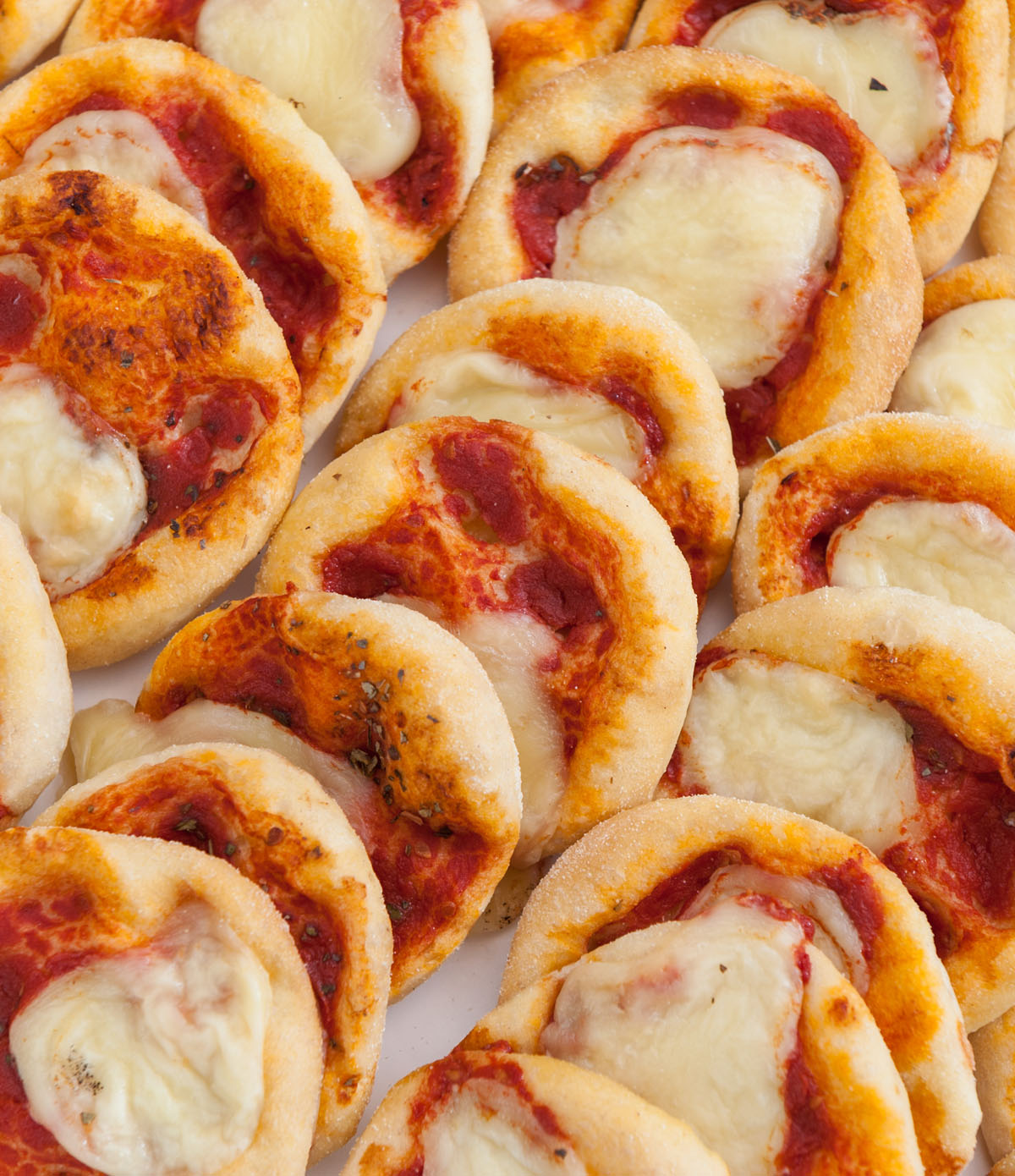 - Вынимаем из духовки и добавляем измельченную моцареллу на каждую мини-пиццу.