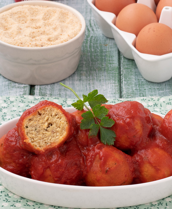 ПодготовкаЭто блюдо для нашего пасхального обеда оценят маленькие гурманы. Сегодня готовим хлебные фрикадельки с соусом. В первую очередь готовим фрикадельки. В миску крошим хлеб, смешиваем его с сыром, петрушкой, рубленным чесноком, яйцом, солью и перцем. Формируем из массы шарики и обжариваем в масле до золотистого цвета. в оливковом масле обжариваем лук, добавляем пассату и тушим 15 минут. Перед подачей окуните тефтельки в соус и подавайте к столу. | Для этого рецепта мы использовали:Протертые томаты 500 мл |