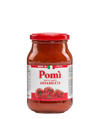 Salsa para pasta all’Arrabbiata Pomì es una salsa preparada con pocos y simples ingredientes de sabor fuerte, realizada con nuestro tomate italiano y el agregado de guindilla. Está lista para verter directamente sobre la pasta recién escurrida.