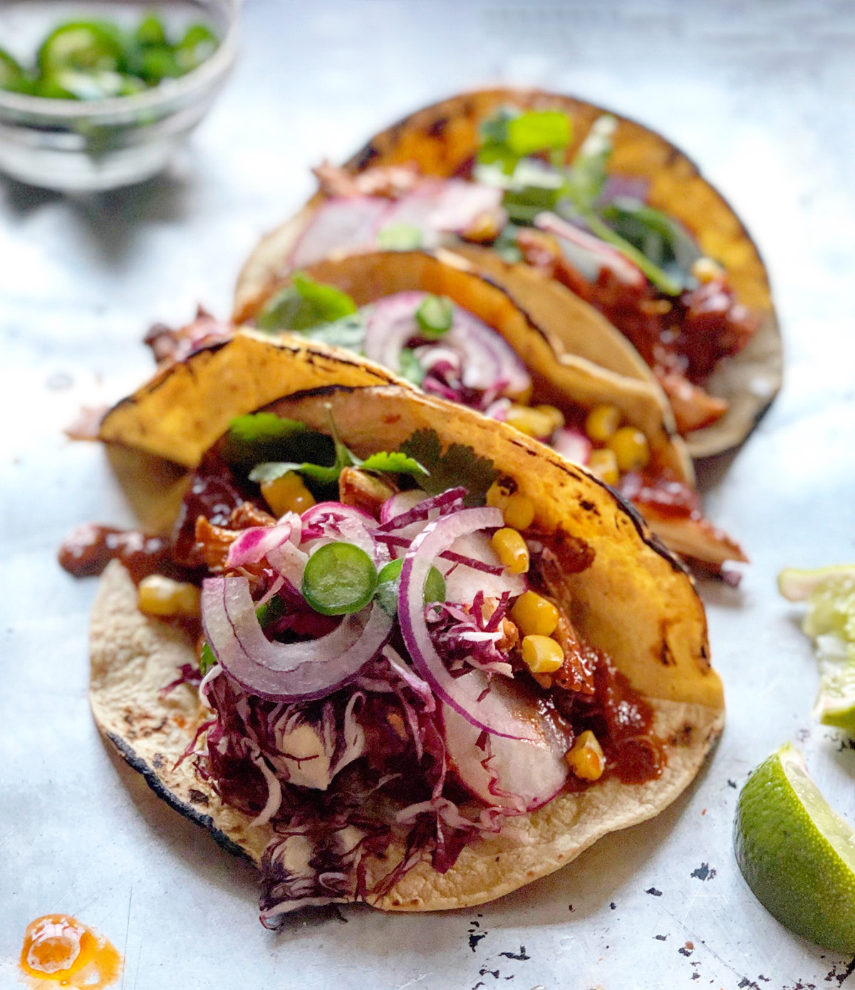 Las opciones de aderezos son infinitas cuando se trata de tacos. Algunos de los clásicos: queso cheddar o de jalapeños, el queso cojita también es delicioso aquí, aguacates, salsa, maíz asado y lechuga rallada. RECIPE NOTES