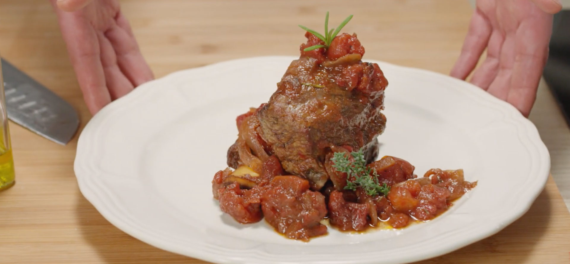 - Añadir las hierbas aromáticas y completar con el resto del caldo y el Pomì tomate finamente troceado.
